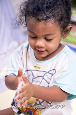 這些訓練需要一點時間,過程中真的會測試父母的耐心,有時候增加一些小道具,會很有幫助,PLAY & FUN 大玩樂 嬰幼兒多用途保濕慕斯/慕絲有綿密的泡泡,讓Tater每次要準備洗手時都會開心地說「bubbles(泡泡)」,看著他願意配合,一邊洗手,一邊玩著泡泡,轉眼之間,40秒的洗手歌就唱完了!
